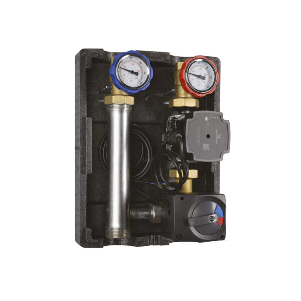 Il gruppo di rilancio ICMA R001 viene utilizzato per regolare la distribuzione e la temperatura del fluido termovettore negli impianti di riscaldamento multipiano e/o multizona.