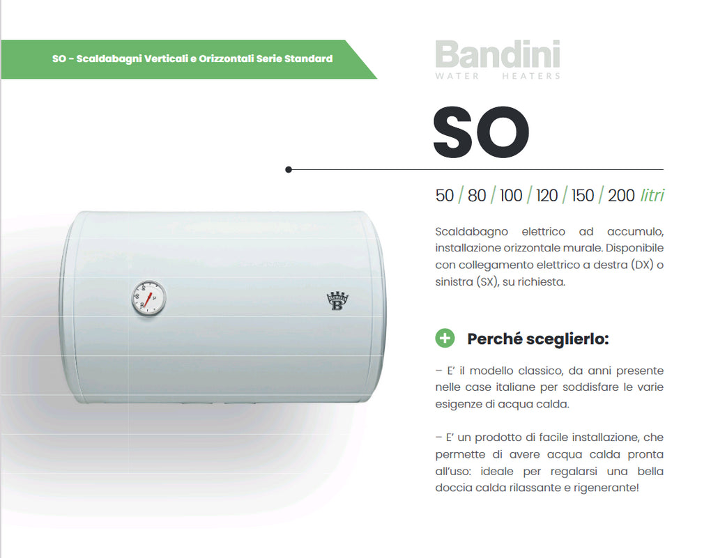 SCALDABAGNO BANDINI ELETTRICO ORIZZONTALE 50 LT SO DESTRO BRAUN 2 ANNI