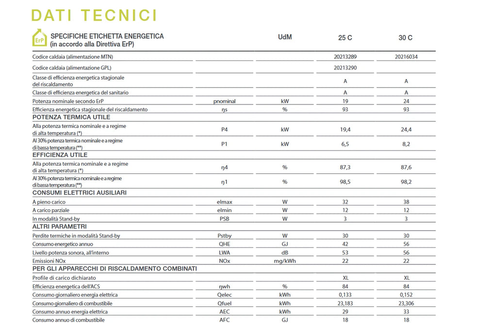 Potenza: 25 kW a condensazione – alimentazione Metano