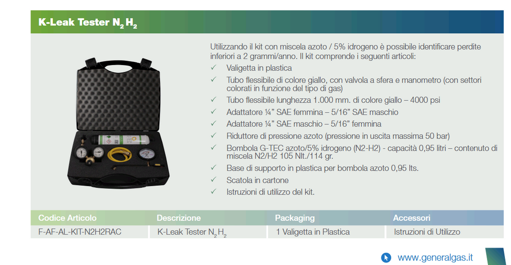 KIT CERCAFUGHE AZOTO/IDROGENO GENERAL GAS SERIE K-LEAK TESTER